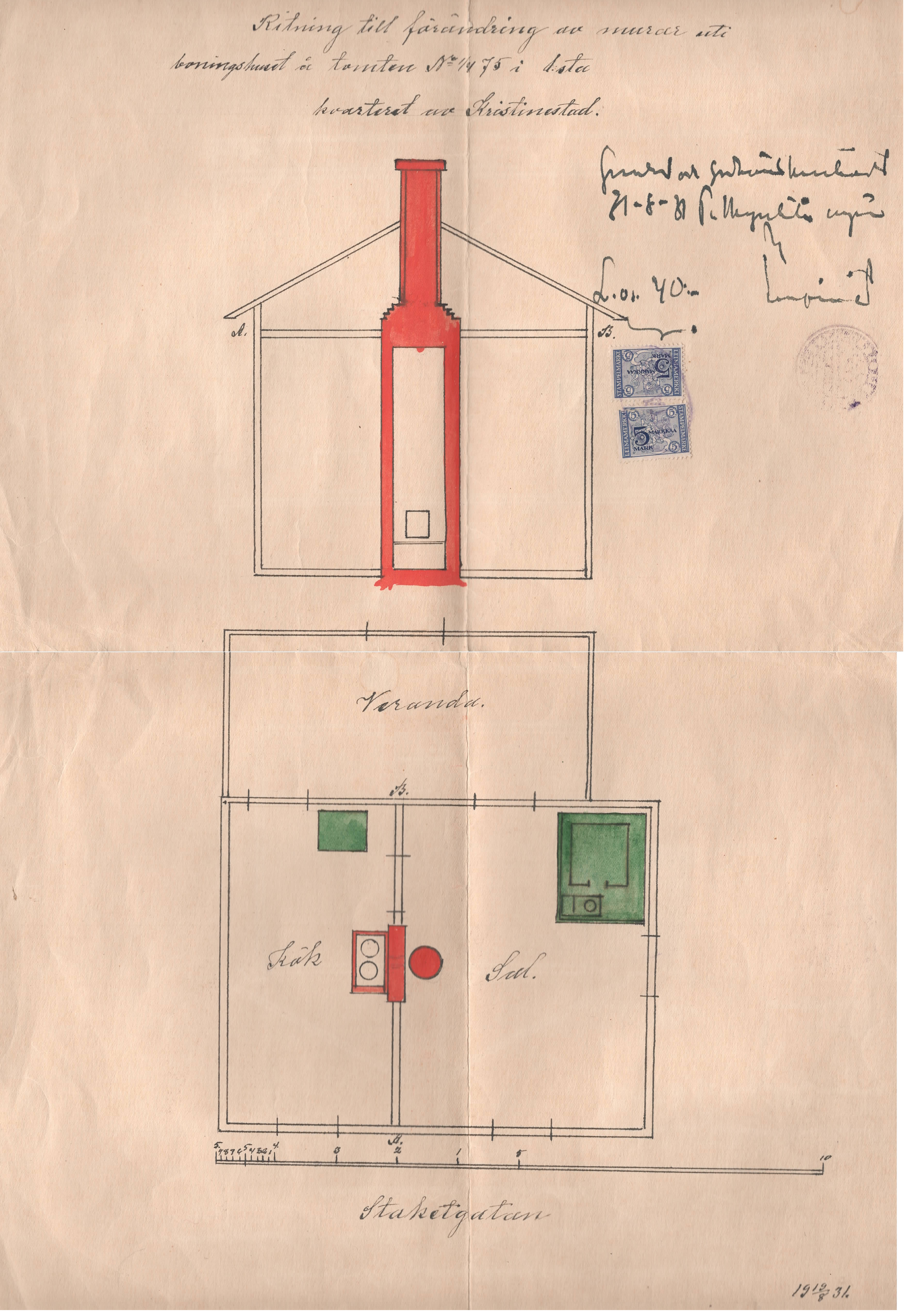 Brandförsäkringsbrev N:o 34217 från år 1915 å gården ¼75 i första qvarteret af staden Christinestad